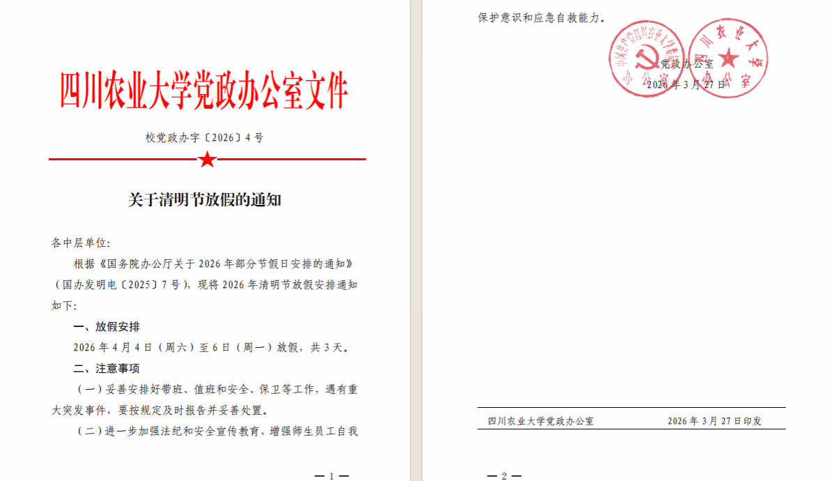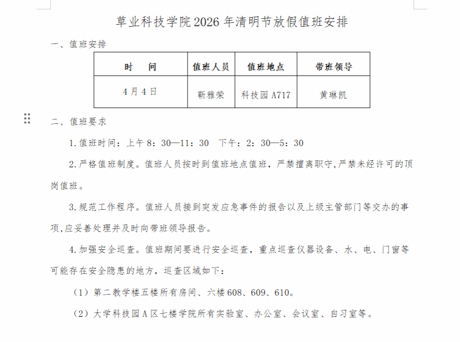 2026清明节放假通知及值班安排